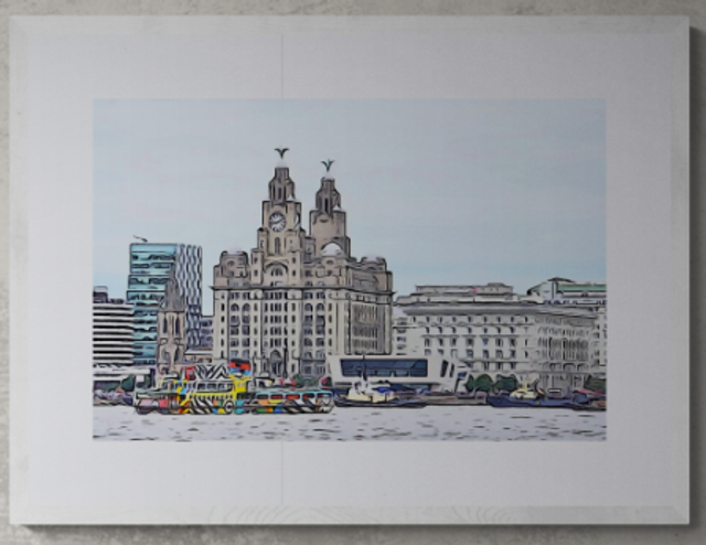 Medium-8x10" (21cm x 26cm) or Large-11x14" (28cmx36cm) Mounted Photo Print-Waterfront Illustration