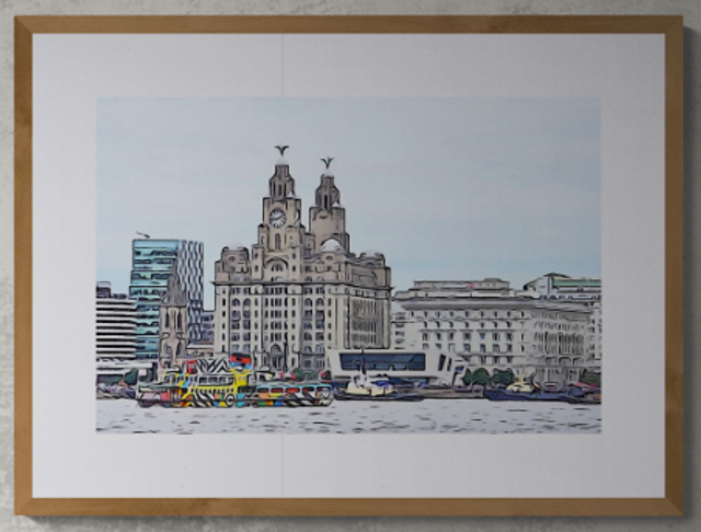Waterfront Illustration Skyline w/ferry Print